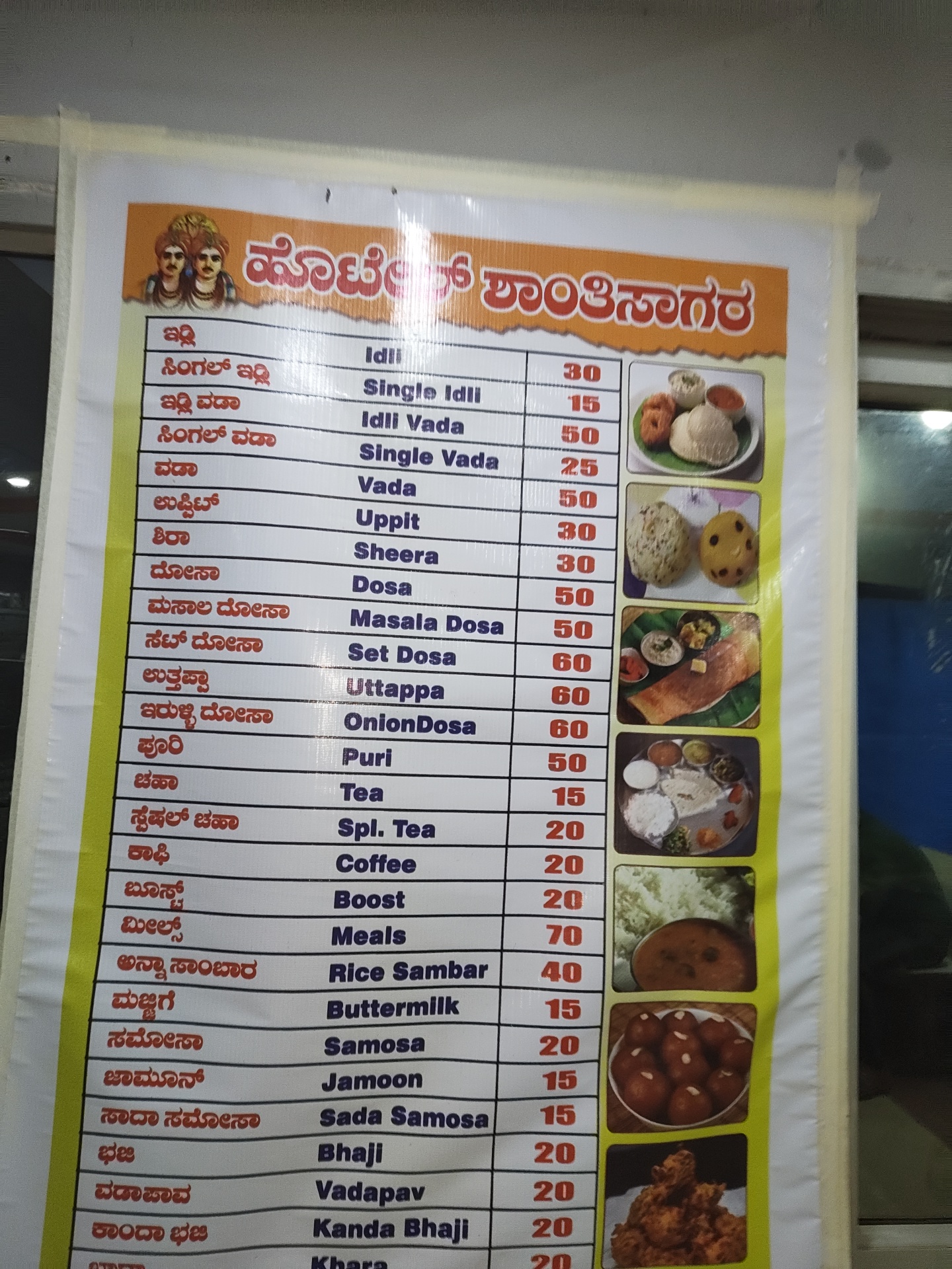 Idli Vada Dosa Uppit abd Meals Rice Sambar etc.